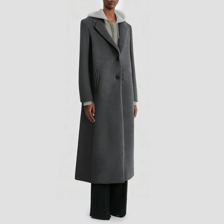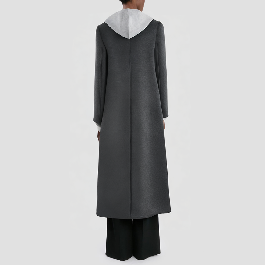 This jacket features a high-quality polyester woven fabric with medium thickness, offering warmth and breathability for spring, autumn, and early winter wear. The detachable hood adds a casual touch while allowing versatile styling options. Color-blocked panels paired with a single-button placket create a retro-chic aesthetic, while the long silhouette drapes naturally to flatter your figure. Practical pockets combine functionality with aesthetics, meeting everyday storage needs. The overall silhouette balances casual and elegant appeal, making it versatile for multiple occasions—effortlessly transitioning from commuting and dates to everyday leisure.