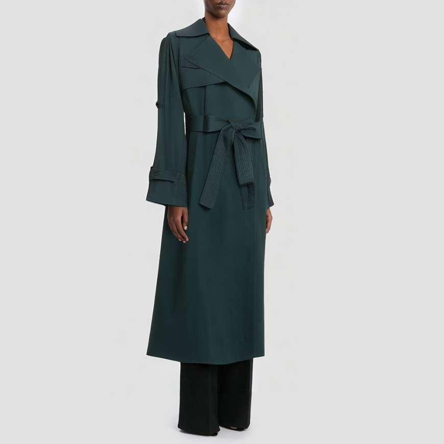 This coat draws inspiration from classic vintage designs, crafted from high-quality polyester woven fabric that feels soft to the touch while offering breathability and durability. The long silhouette is tailored for a flattering fit without restriction, featuring an adjustable belt at the waist to accentuate elegant curves and add dimension to the look. The clean, notched collar pairs with a single-button placket for easy wear, making it perfect for autumn daily wear or casual occasions. Practical pockets serve both functional storage and design enhancement, establishing this as an essential fashion piece for your fall wardrobe.