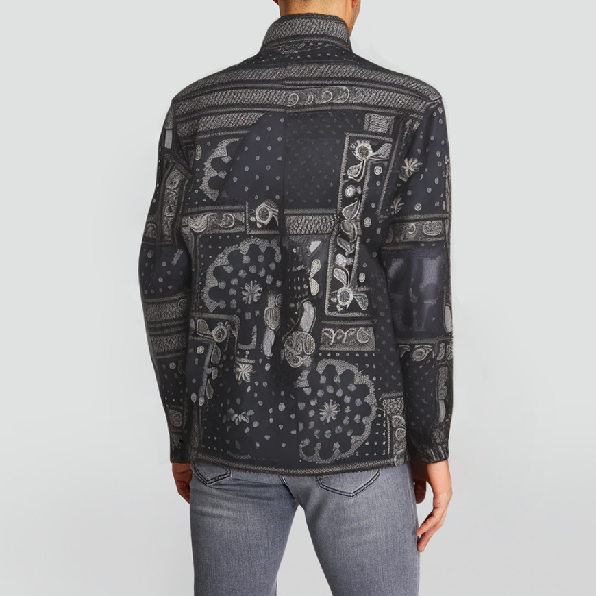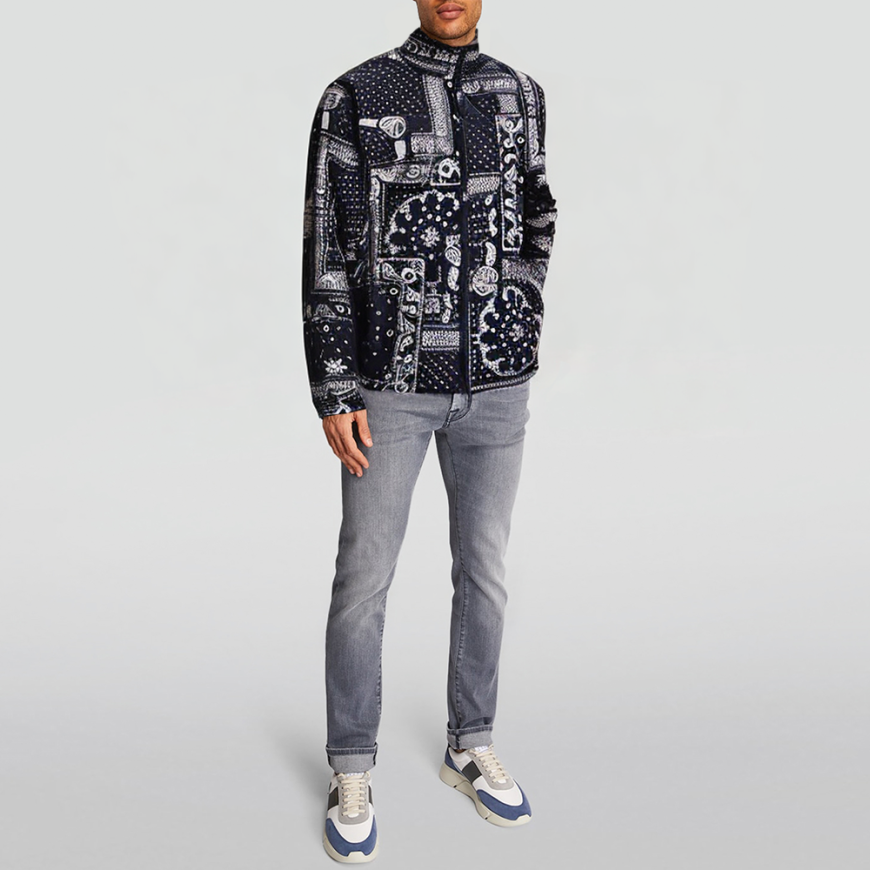 This jacket features a stand-up collar that accentuates a sharp, clean neckline while effectively shielding against cold winds. Its design combines a large handkerchief print with a cropped puffer silhouette, blending fashion-forward style with practicality. The jacket is thickened throughout and filled with high-quality duck down, offering superior warmth for winter outdoor adventures and everyday casual wear. A front zipper facilitates easy wear and removal, while regular sleeves and standard length ensure unrestricted movement. Practical side pockets accommodate essentials and add visual dimension.