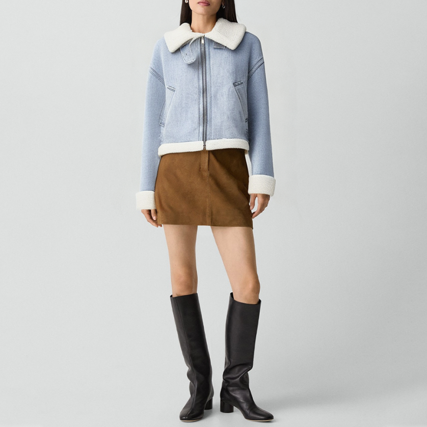 This jacket features a retro flight jacket design with a sleek cropped silhouette. The lapel collar adds classic sophistication, while the reversible construction offers versatile styling options. The long-sleeve style is perfect for everyday autumn and winter wear. The smooth, durable zipper placket is complemented by decorative pockets, blending practicality with layered dimension. Crafted from satin-weave fabric treated with yarn-dyeing techniques, it boasts a solid-color sheen with uniform, stable texture. This material resists wrinkles, offers breathability, prevents shrinkage, and is eco-friendly—ensuring comfortable, long-lasting wear.